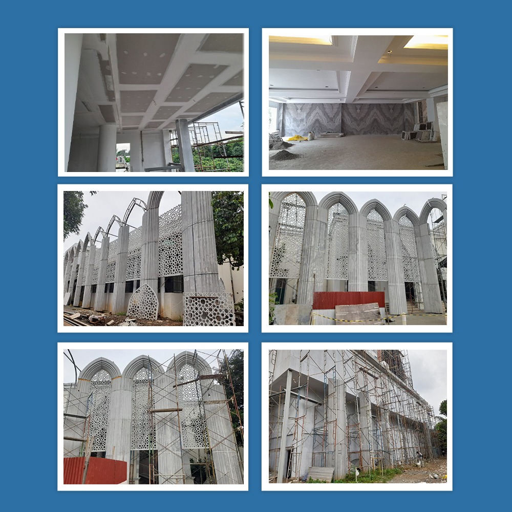 4. Pemasangan GRC fasad area depan, void dan keliling masjid.