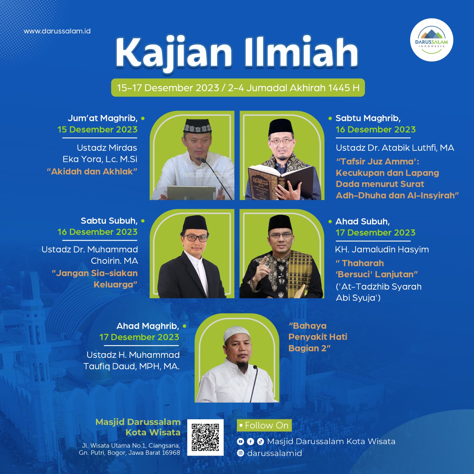 KAJIAN ILMIAH MASJID DARUSSALAM KOTA WISATA 15-17 Desember 2023/2-4 Jumadal Akhirah 1445 H Jum’at Maghrib, 15 Desember ...