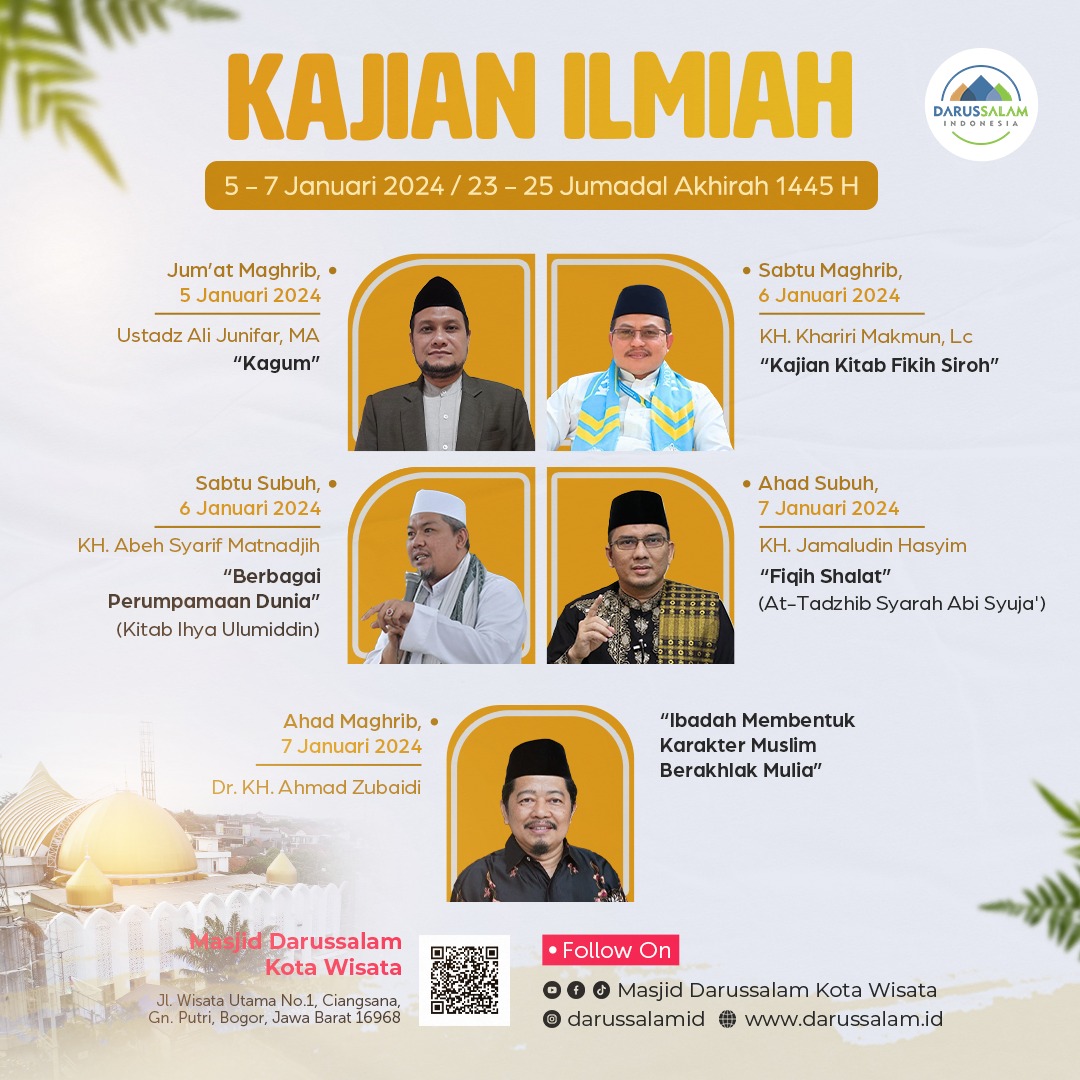 KAJIAN ILMIAH MASJID DARUSSALAM KOTA WISATA 5-7 Januari 2024 / 23-25 Jumadal Akhirah 1445 H Jum’at Mag...