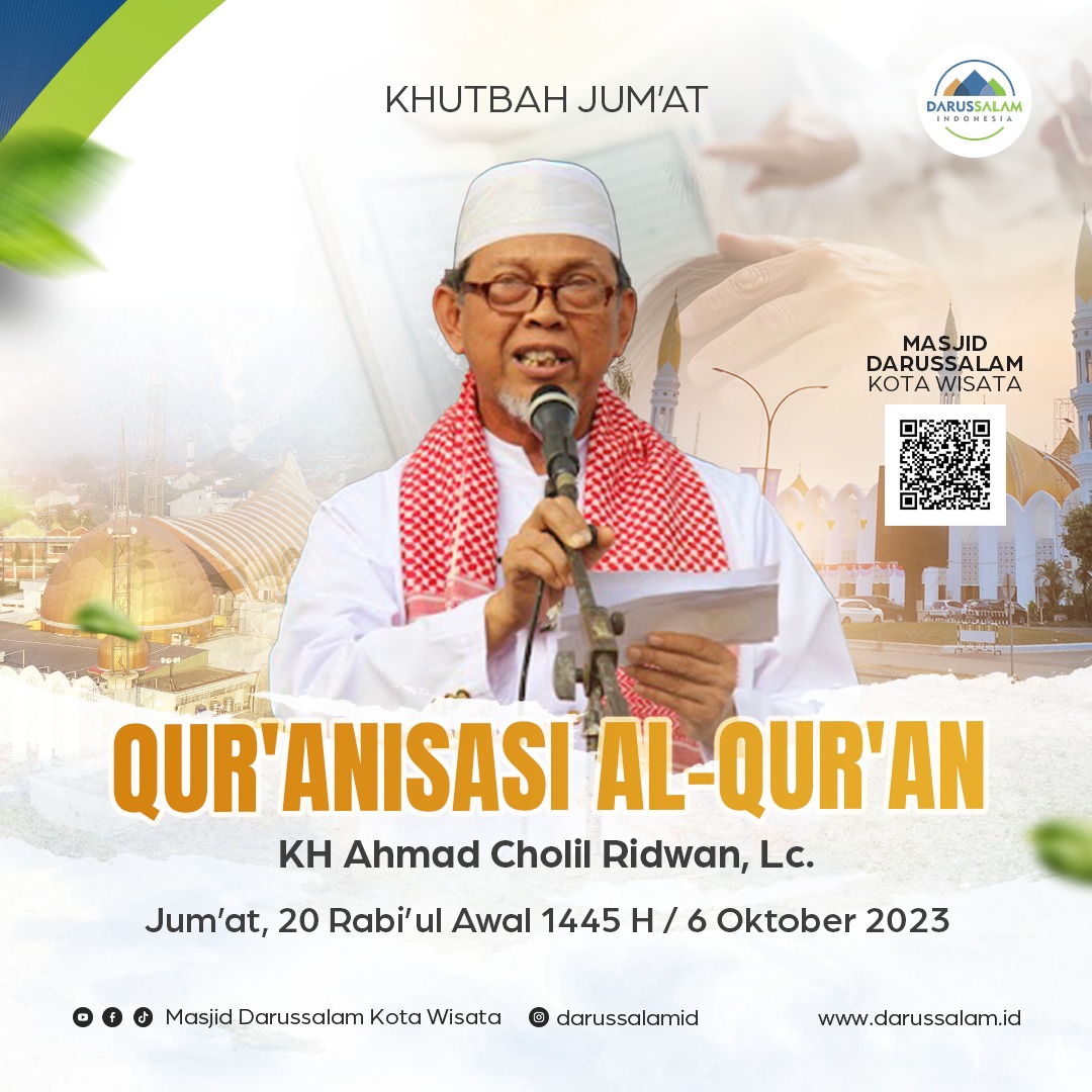 📗 Khotib Jum'at====================📋 "Qur'anisasi Al Qur'an"🎙KH. Ahmad Cholil Ridwan, Lc.🗓 Jum'at, 20 Rabi'ul Awal 1445 H / 6 Oktober 2023 M⏳ Waktu: 11.49 WIB====================Masjid Darussalam K...
