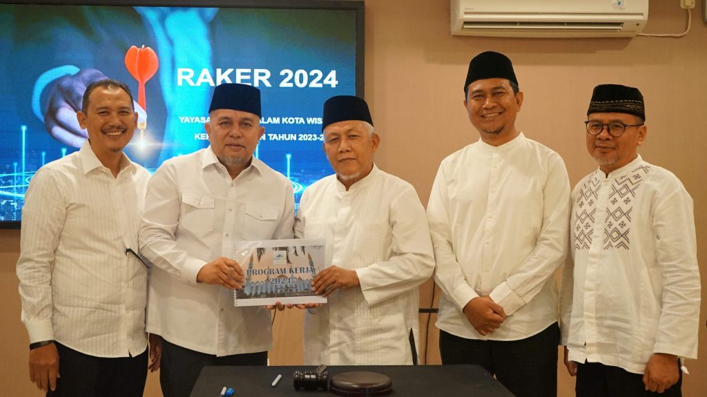Acara dilanjutkan dengan penyampaian program kerja tahun 2024 oleh Bapak Nofil Anoverta selaku Ketua Yayasan Darussalam Kota Wisata.
