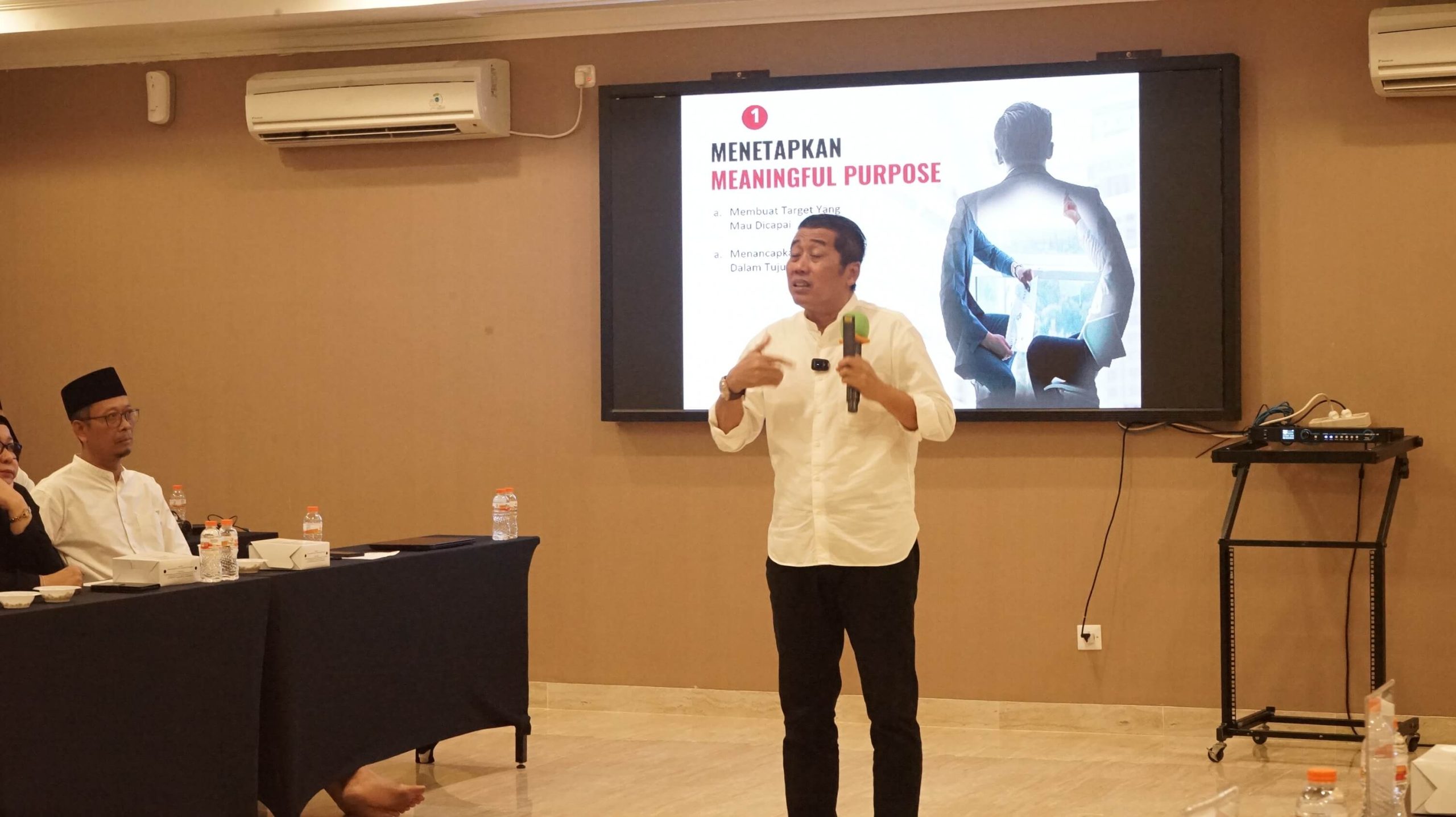 Acara yang dilaksanakan di ruang pertemuan lantai 3 Masjid Darussalam itu diawali dengan sambutan dari Ketua Dewan Pembina, Bapak Hengki Haryadi. Setelah itu, Jamil Azzaini, motivator nasional memaparkan materi terkait kolaborasi tim yang diperlukan dalam berorganisasi.