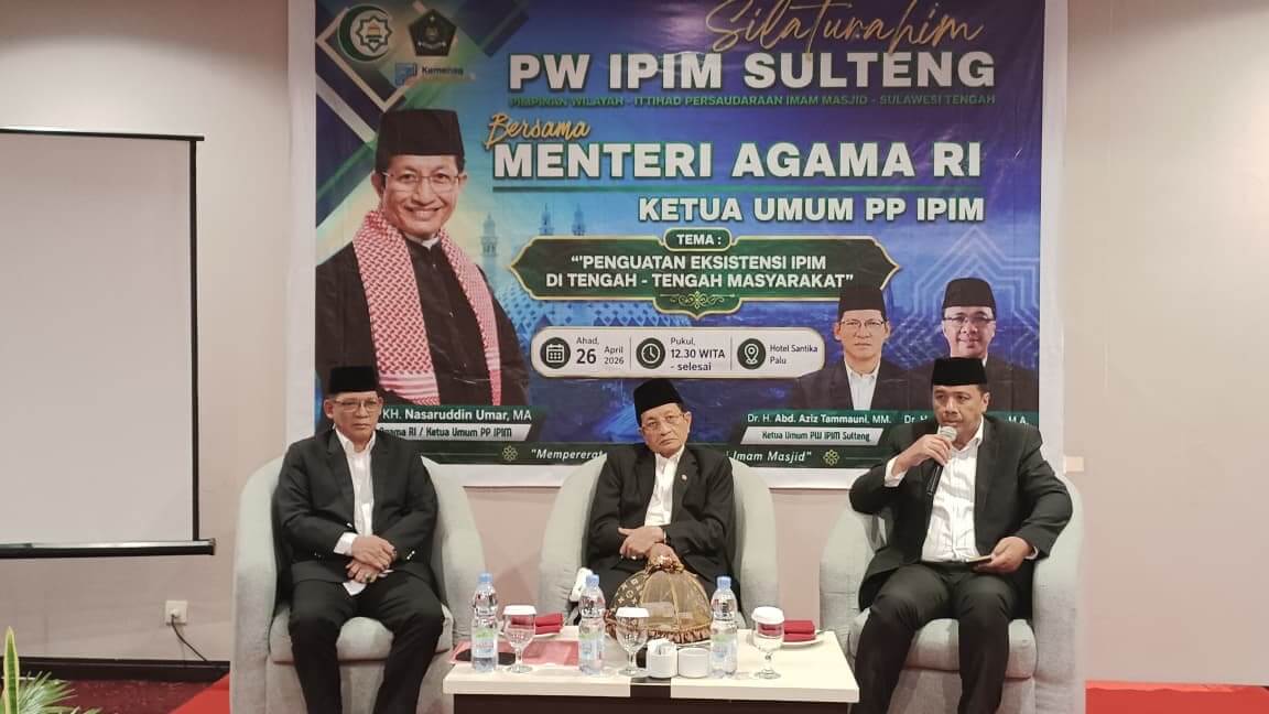 Pesan ini disampaikan Menag saat bersilaturahim dengan Pimpinan Wilayah IPIM Sulawesi Tengah di Palu, Sabtu (26 April 2026). Kegiatan tersebut turut dihadiri Kepala Kantor Wilayah Kementerian Agama Sulawesi Tengah, Junaidin, serta jajaran pengurus PW IPIM Sulawesi Tengah.
