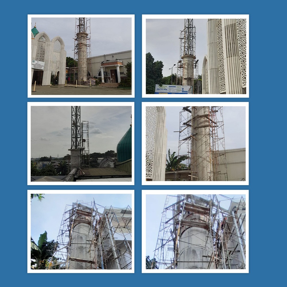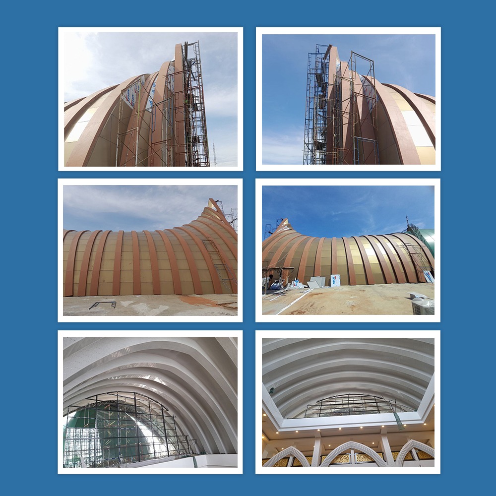 1. Pemasangan penutup atap kubah ACP.