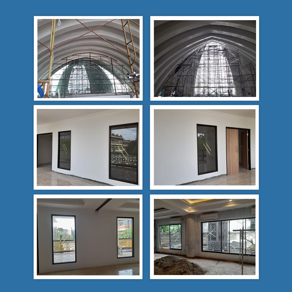 3. Pemasangan kaca jendela lantai 1 dan 3.