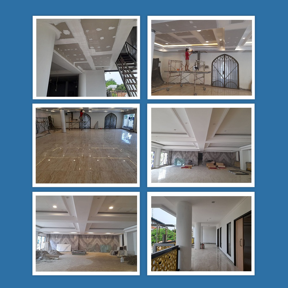 4. Pengerjaan plafon gypsum lantai 1, 2 dan lantai 3.
